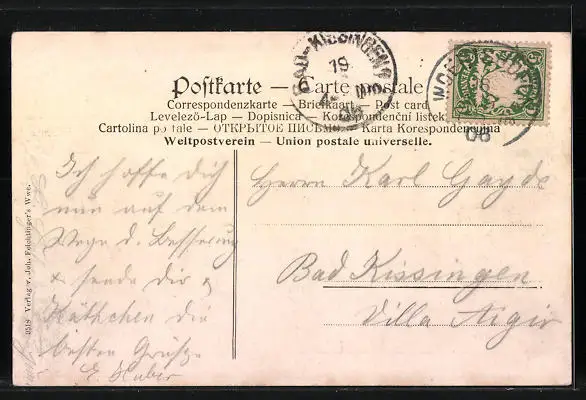 gelaufen 1906, Eckknick oben rechts, guter Zustand