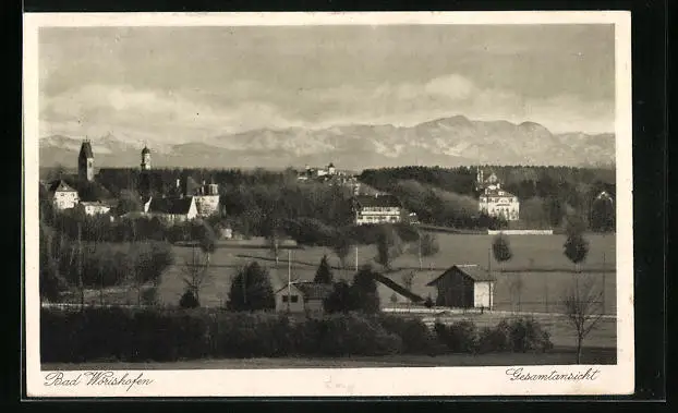 AK Wörishofen, Teilansicht vor Bergpanorama