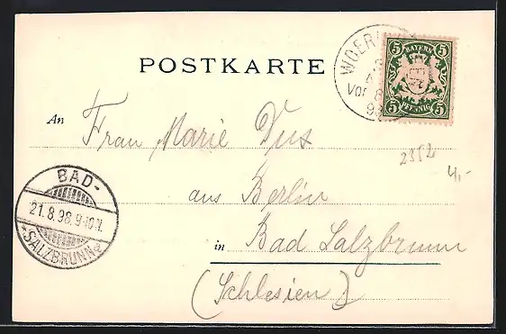 alte Ansichtskarte, gelaufen 1898, guter Zustand