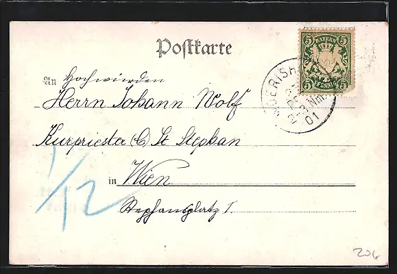 alte Ansichtskarte, gelaufen 1901, Stempelspur, guter Zustand