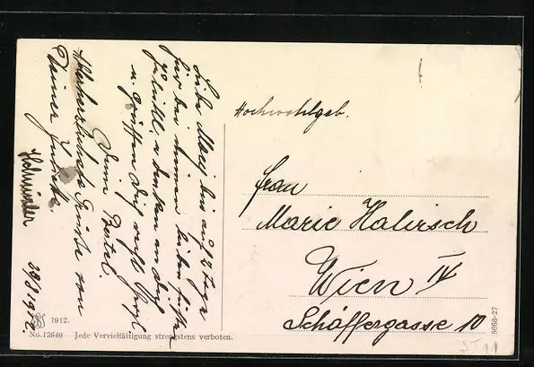 alte Ansichtskarte, gelaufen, Briefmarke entfernt, rückseitig Oberflächenschaden, guter Zustand