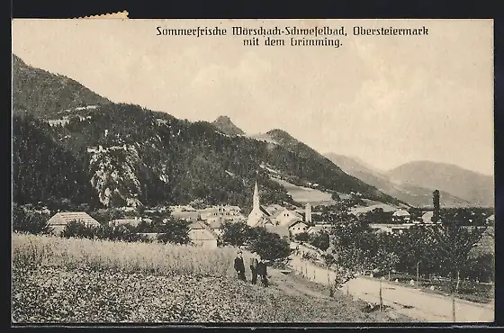 AK Wörschach-Schwefelbad, Ortsansicht mit dem Grimming