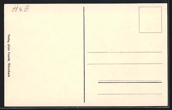 Personenbezogene Daten auf der Rückseite der Karte wurden durch blauen Textmarker unkenntlich gemacht. Die blauen Stellen sind auf die Vorderseite durchgeweicht und wirken sich negativ auf das Postkartenfoto aus