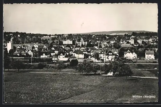 AK Wohlen, Teilansicht mit Feldern aus der Vogelschau