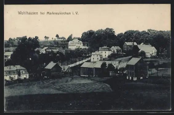 AK Wohlhausen bei Markneukirchen, Ortsansicht vom Hügel aus