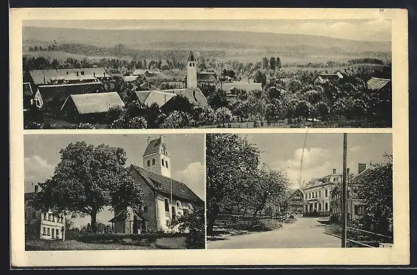 AK Wohmbrechts, Panorama, Strassenansicht & Kirche