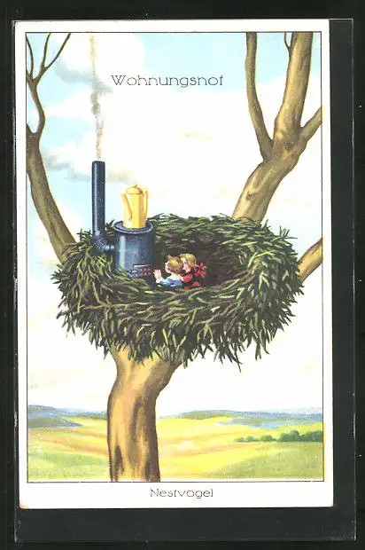 AK Wohnungsnot, Kleines Paar wohnt im Vogelnest