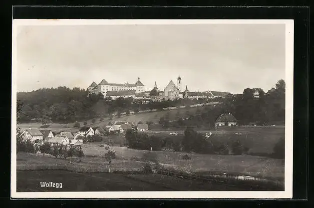 AK Wolfegg, Ortsansicht mit Wiesen