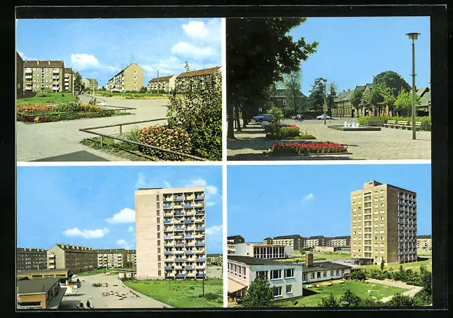 AK Wolfen /Bitterfeld, Wohnkomplexe, Springbrunnen