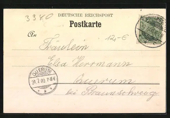 alte Ansichtskarte, gelaufen 1900, Eckknick oben rechts, guter Zustand