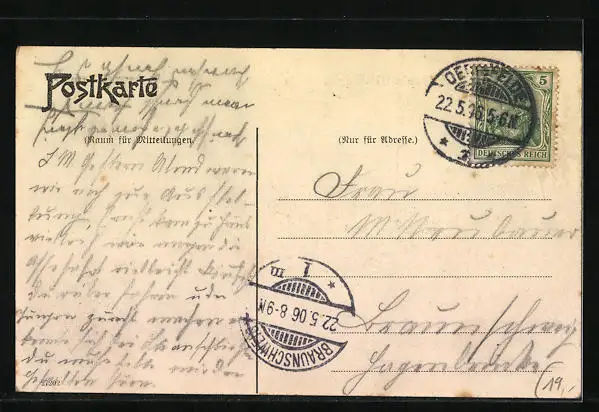 alte Ansichtskarte, gelaufen 1906, guter Zustand