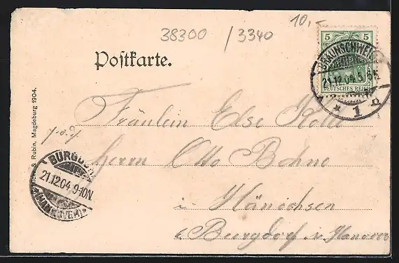alte Ansichtskarte, gelaufen 1904, rückseitig Oberflächenschaden, Eckknick re. oben, guter Zustand