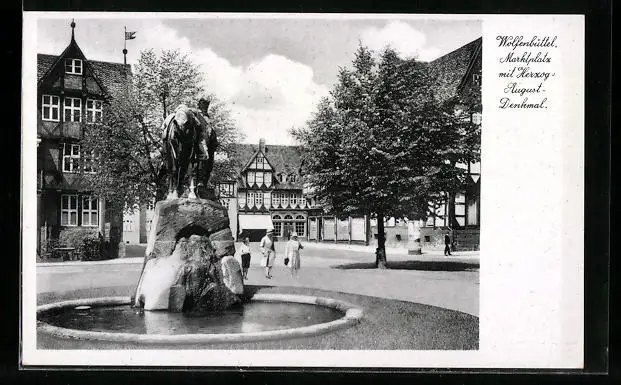 AK Wolfenbüttel, Marktplatz mit Herzog-August-Denkmal