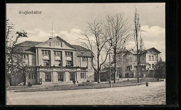 AK Wolfenbüttel, Ortspartie mit Restaurant Kaffeehaus und Anlagen