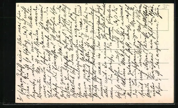 Personenbezogene Daten auf der Rückseite der Karte wurden durch blauen Textmarker unkenntlich gemacht. Die blauen Stellen sind auf die Vorderseite durchgeweicht und wirken sich negativ auf das Postkartenfoto aus