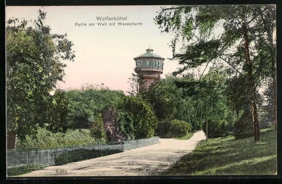 AK Wolfenbüttel, Partie am Wall mit Wasserturm
