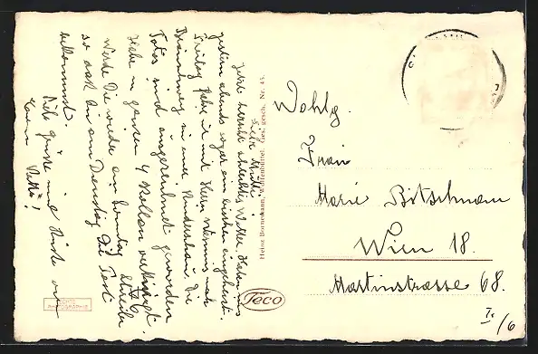 alte Ansichtskarte, gelaufen, Briefmarke entfernt, guter Zustand