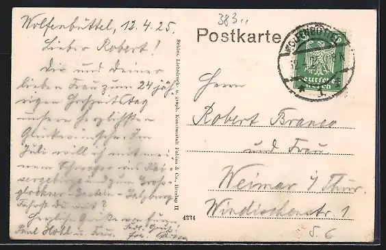 alte Ansichtskarte, gelaufen 1925, guter Zustand