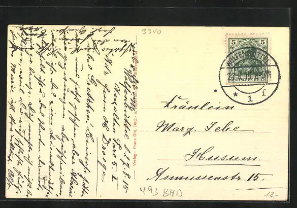 alte Ansichtskarte, gelaufen 1915, Stempelspur, guter Zustand