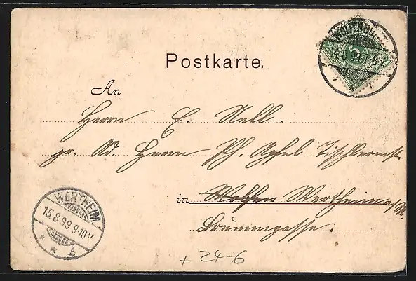 alte Ansichtskarte, gelaufen 1899, Eckknicke re. unten, guter Zustand