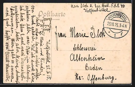alte Ansichtskarte, gelaufen 1915, Eckknick unten re., guter Zustand