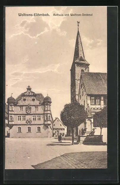 AK Wolframs-Eschenbach, Rathaus und Wolfram-Denkmal