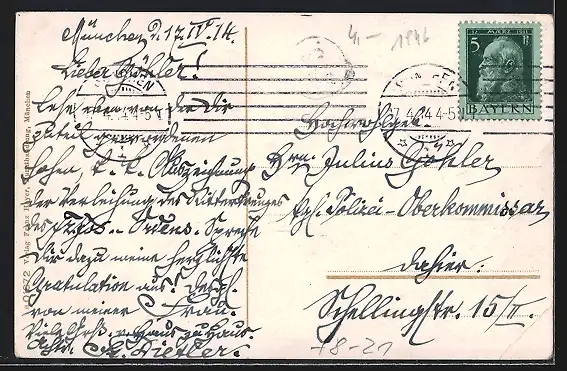 alte Ansichtskarte, gelaufen 1914, guter Zustand