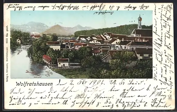 AK Wolfratshausen, Flusspartie und Ortsansicht