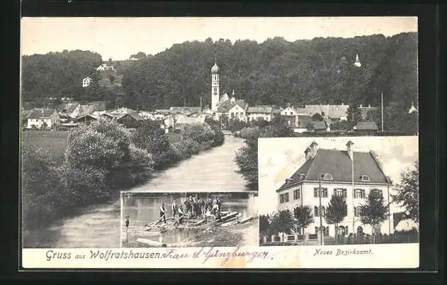 AK Wolfratshausen, Teilansicht, Neues Bezirksamt, Floss