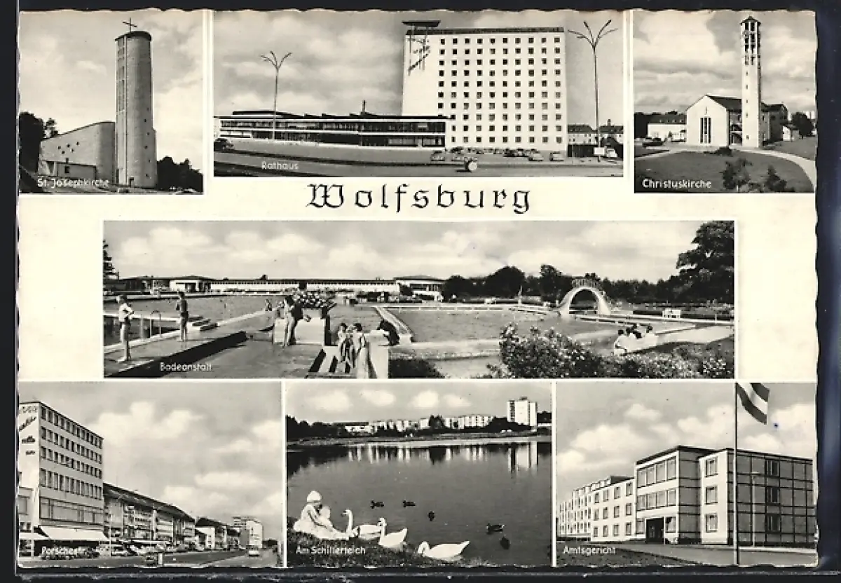 AK Wolfsburg, Badeanstalt, Rathaus u. Christuskirche
