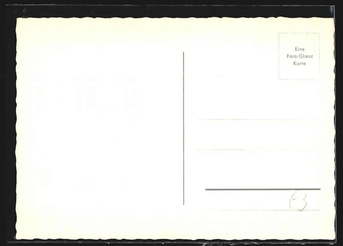 Personenbezogene Daten auf der Rückseite der Karte wurden durch blauen Textmarker unkenntlich gemacht. Die blauen Stellen sind auf die Vorderseite durchgeweicht und wirken sich negativ auf das Postkartenfoto aus