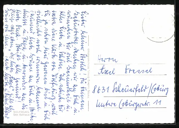 alte Ansichtskarte, gelaufen, Briefmarke entfernt, rückseitig Oberflächenschaden, Bugspuren oben u. unten re., guter Zustand