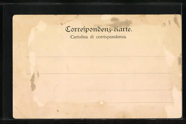 alte Ansichtskarte, ungelaufen, Eckknick unten re., Kleiner Einriss oben re., rückseitig Klebe- und Papierreste, rückseitig Oberflächenschaden