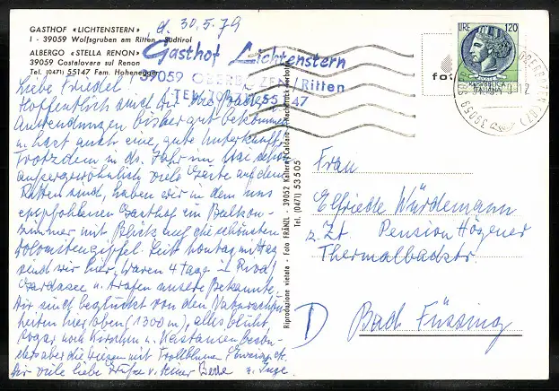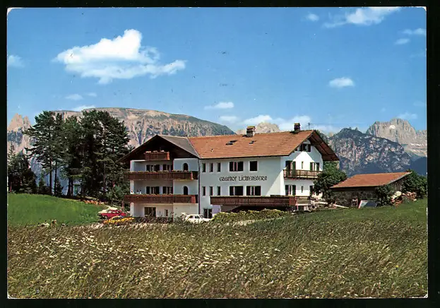 AK Wolfsgruben am Ritten, Gasthof Lichtenstern mit Bergkulisse