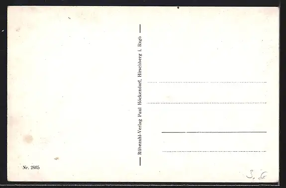 Personenbezogene Daten auf der Rückseite der Karte wurden durch blauen Textmarker unkenntlich gemacht. Die blauen Stellen sind auf die Vorderseite durchgeweicht und wirken sich negativ auf das Postkartenfoto aus