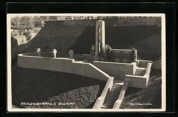 AK Wolfurt, Kriegerdenkmal aus der Vogelschau gesehen