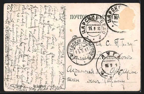 alte Ansichtskarte, gelaufen 1911, Briefmarke entfernt, rückseitig Oberflächenschaden, guter Zustand