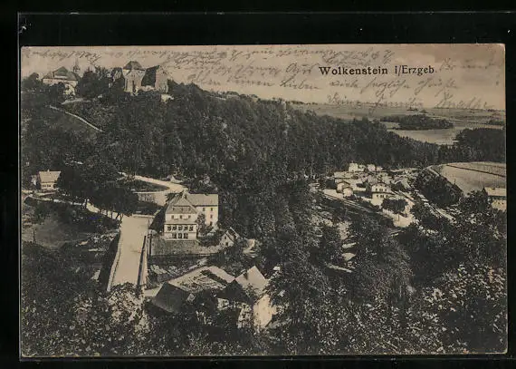 AK Wolkenstein /Erzgeb., Ortsansicht mit Gebirgen