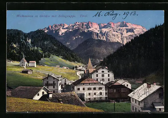 AK Wolkenstein, Ortsansicht mit Sellagruppe