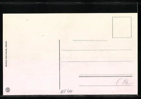 Personenbezogene Daten auf der Rückseite der Karte wurden durch blauen Textmarker unkenntlich gemacht. Die blauen Stellen sind auf die Vorderseite durchgeweicht und wirken sich negativ auf das Postkartenfoto aus