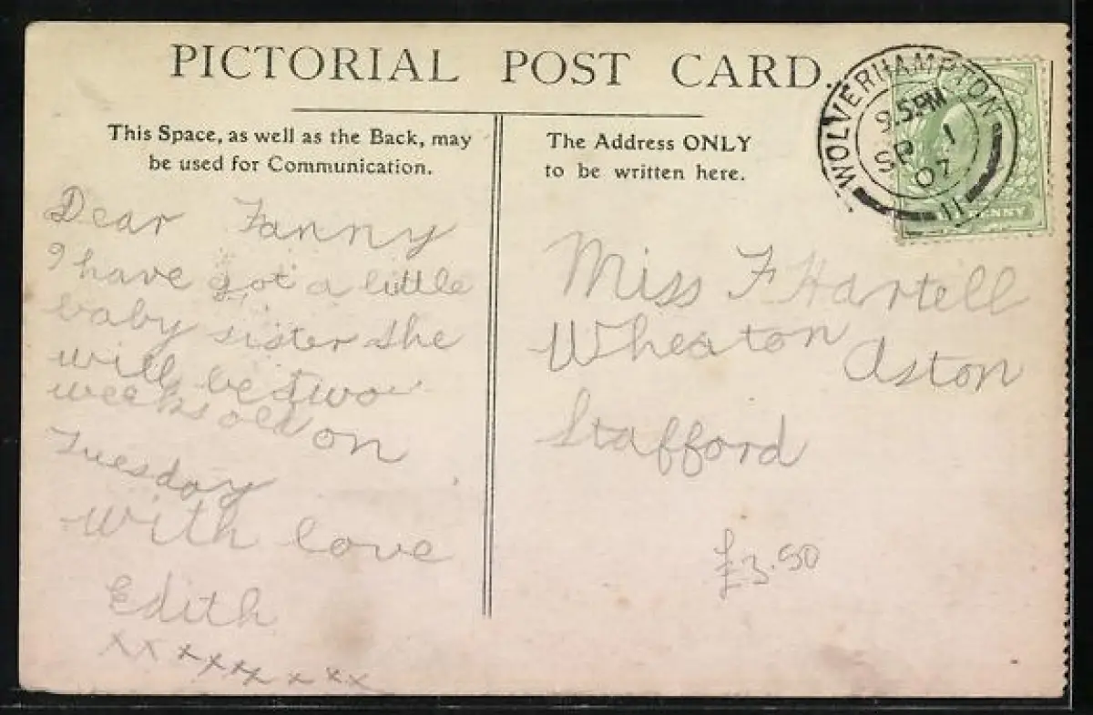 alte Ansichtskarte, gelaufen 1907, Knick in der oberen Kante, guter Zustand