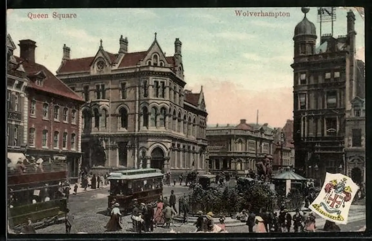 AK Wolverhampton, Queen Square with trams