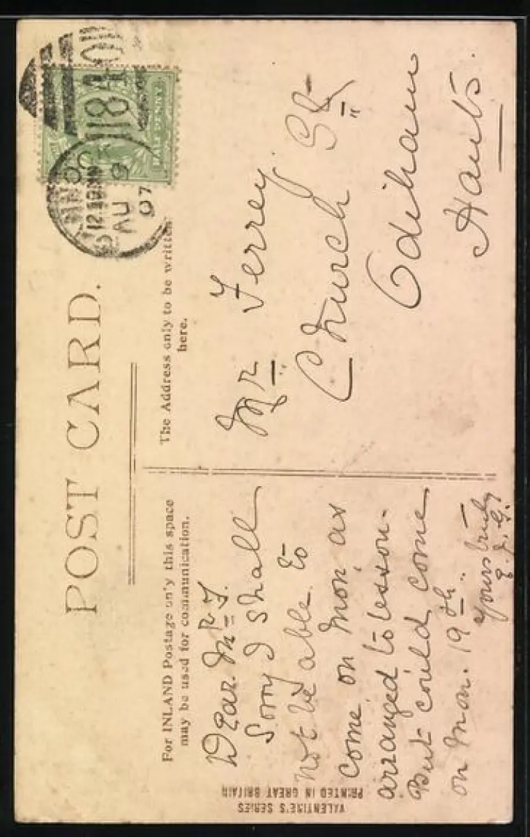 alte Ansichtskarte, gelaufen 1907, Eckknick unten rechts, guter Zustand