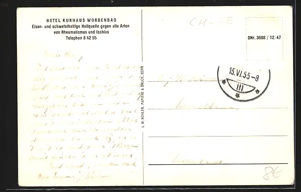 alte Ansichtskarte, gelaufen 1955, Briefmarke entfernt, guter Zustand