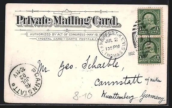 alte Ansichtskarte, gelaufen 1902, Eckknicke oben, Abriebspuren li. mittig und oben, guter Zustand