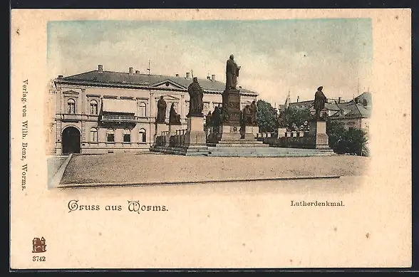 AK Worms, Ansicht vom Lutherdenkmal