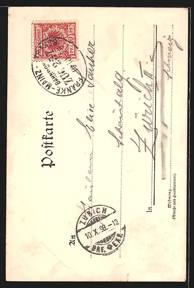alte Ansichtskarte, gelaufen 1898, Einriss unterer Rand, guter Zustand