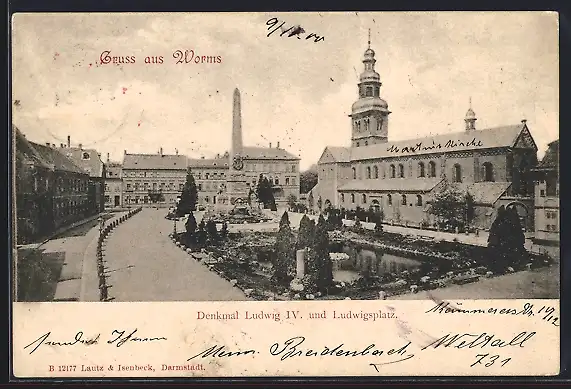 AK Worms, Denkmal Ludwig IV. und Ludwigsplatz