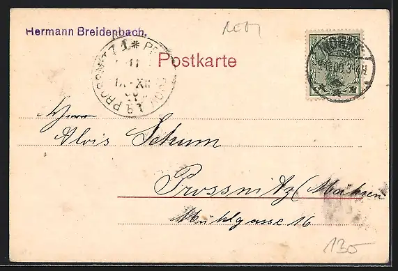 alte Ansichtskarte, gelaufen 1900, Stempelspur, guter Zustand