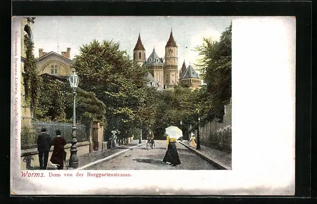 AK Worms, Dom von der Berggartenstrasse aus gesehen